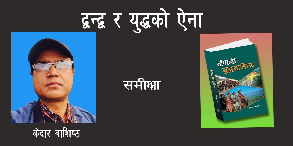 अधिकांश मानिसको कामना हुन्छ भविष्यका कुनै पनि प्रकारका युद्ध नहुन् तर समाजका विभिन्न किसिमका अन्याय अत्याचार शोषण उत्पीडन जस्ता आन्तरिक र बाह्य कारणले पनि द्वन्द्वका रूपमा युद्धपूर्वको सामाजिक अवस्थालाई वीजका रूपमा राखिराखेको हुन्छ । बाह्य युद्धका लागि संसारका प्रायः देशहरूले सेना र हातहतियारका लागि र शान्तिका नाममा संयुक्त राष्ट्रसङ्घ र अन्य निकायमा हुने लगानीमा पनि द्वन्द्व र कता कता युद्ध साहित्यको शक्ति सञ्चय भएको प्रतीत हुन्छ । झन्डै पाँच सय पृष्ठको भुँडी पुराण प्रकाशनको पुस्तक ‘नेपाली युद्धसाहित्य’ नेपाली द्वन्द्व र युद्धको तस्बिर देखाउने ऐना हो भन्न सकिन्छ ।