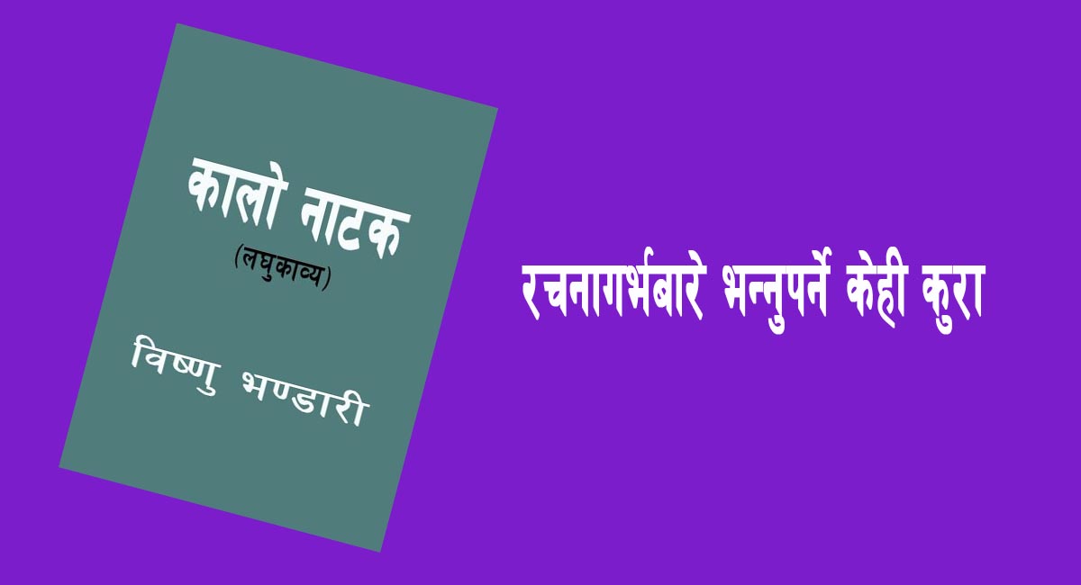 त्यही नाटकको काव्यिक अभिव्यक्ति हो ‘कालो नाटक ।’ यो कविता मात्र हैन इतिहास पनि हो । अरू कवि साहित्यकारले खासै नबोलेको विषयमा लेखिएको यो कविता अलिक भिन्न छ । अलिक फरक छ । सबैभन्दा नराम्रो कुरो यसले छन्दमाथि मजाक गरेको छ । छन्दमाथि मजाक गरेर लेखेकोमा अवश्य पनि गाली पाउने छु मैले ।