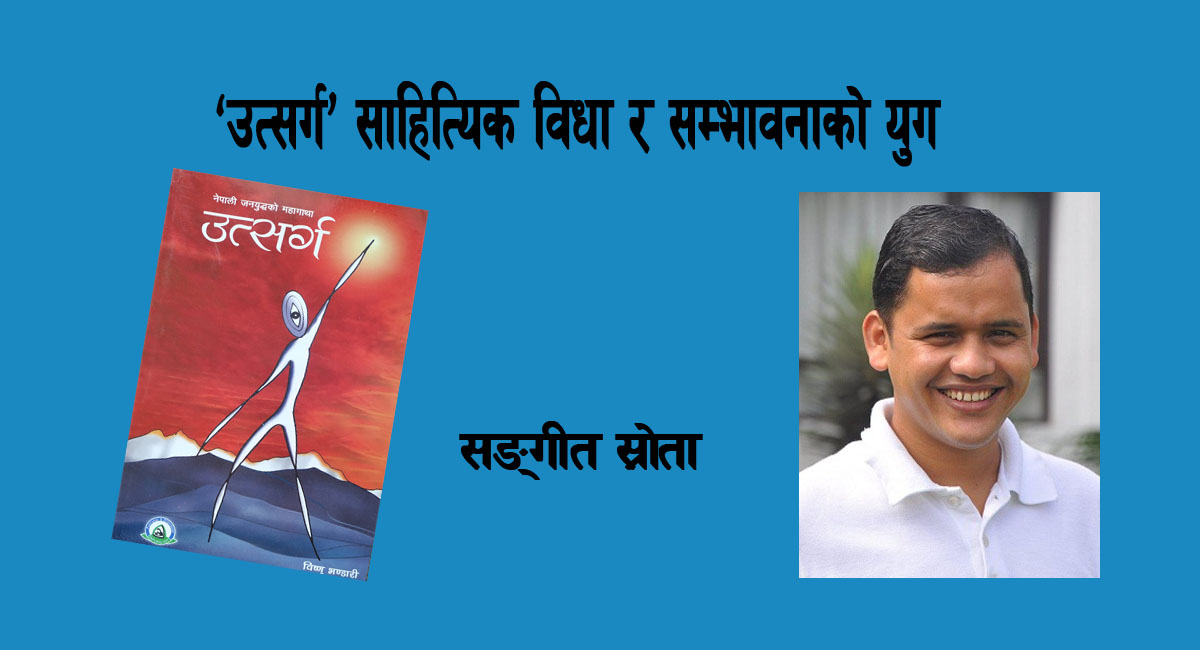 नेपाली साहित्यमा यथार्थको माथि उल्लिखित नकारात्मक प्रवृति मात्रै हावी छ्र्रैन । यसको ठिक विपरीत समाज, सङ्घर्ष र समयको पदचाप छामेर कलम चलाउने सचेत र प्रतिबद्ध साहित्यकारहरू पनि आफ्नो जाँगरमा जाँगर थपिरहेका छन् । जनताको त्याग, बलिदान र सङ्घर्षलाई ससम्मान आफ्ना रचना मार्फत् सलाम गर्ने स्रष्टाहरू पनि क्रियाशील छन् । ती मध्ये एक हुन्– कवि विष्णु भण्डारी । उनको महाकाव्य ‘उत्सर्ग’ भर्खरै प्रकाशित भएको छ, जुन भण्डारीको मात्रै होइन जनयुद्धलाई विषय बनाएर लेखिएको नेपाली साहित्यकै पहिलो महाकाव्य हो । यसले जनयुद्धको मूल्यलाई स्थापित गर्न महत्वपूर्ण भूमिका त खेल्ने नै छ, साथसाथै स्रष्टाहरूलाई विधागत विविधताबारे विमर्श गर्ने अवसर पनि दिएको छ ।